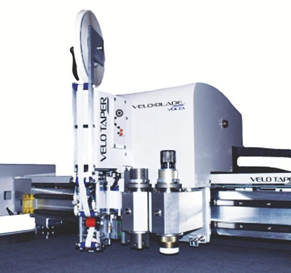 The VeloBlade range of digital die-cutting systems can now be equipped with an innovative new automatic tape applicator called the VeloTaper. The VeloTaper is a fully automated flatbed taping system that applies double-sided tape accurately onto a variety of media and or substrates automatically in the designated spots. The result is a finished cut and creased product immediately ready for assembling.