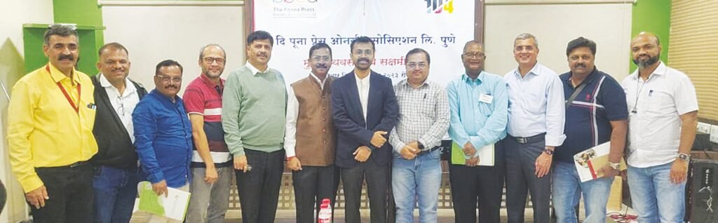 More recently, we made a Presentation on Empowerment of Printers to the distinguished members of Poona Press Owners Association. The entire hall of Patrakar Bhawan was packed and audiance remained in full capacity till last. We received encouraging response. Subject choice remained impressive when we received compliments from them that it was amazing subject first time addressed which was much needed.