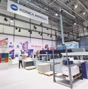 Konica Minolta’s showcase was a surgical, orchestrated digital evolution of printing technology, featuring pioneering print technology from the brand’s trusted 150-year legacy. Next-generation HS-UV Inkjet Press, the AccurioJet 60000, debuted worldwide at Drupa. This flagship model follows the quality and technology of the AccurioJet KM-1e series. It produces a remarkable 6,000 sheets per hour (sph), offers double-sided printing capabilities in a single pass and ensures versatility.