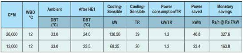 It was suggested that two fresh air pre-cooling units HMX- PCU-F without blowers should be installed for the two chilled water AHUs. This would help in bringing down substantially the temperature of the fresh air being taken in, thus reducing the TR load on the chilled water coils, which would in turn lower the operational expenditure of the air conditioning system installed.