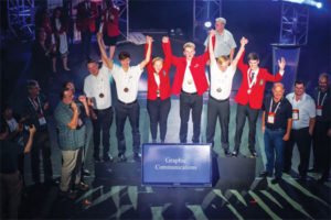 Medalists for the 2019 Graphic Communications Competition (High School level) include: Gold (Jordan Martin, S & W Washtenaw Consortium, Saline, MI), Silver (Nicholas Forsyth, Franklin County CTC, Chambersburg, PA) and Bronze Donald Duca, Norwich Technical High School, Norwich, CT). Medalists for the 2019 Graphic Communications Competition (College level) include Gold (Jade Milloy-Cobb, Illinois Central College, East Peoria, IL), Silver (Hunter Steed, Augusta Technical College, Augusta, GA) and Bronze (Gage Shupard, Thaddeus Stevens College of Tech, Lancaster, PA).