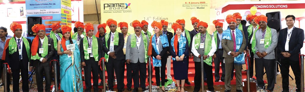 Spread across Hall 1 & 2 of BEC, PAMEX 2020 opened its doors with a never-before-seen inaugural function consisting of 25 chief guests. The ceremony was attended by dignitaries from the printing industry, including Falit Pandya (Ahmedabad Printing Press Association), Surendra Dhote (All Bengal Printers Association), Prakash Joshi (Aurangabad Mudrak Sangh), Ashok Gupta (Bhopal Master Printers Association), Nitin Shah (Bombay Master Printers Association), Dalip Tuli (Greater Delhi Master Printers Association), Avadesh Awasthi (Kanpur Press Owners Association), Balasaheb Ambekar (Maharashtra Mudran Parishad), Tushar Dhote (Mumbai Mudrak Sangh), Raveendra Joshi (Poona Press Owners Association), Sandeep Kumar Sanyal (West Bengal Master Printers Association), Dr Ravindra Gandhi (AIPIMA), Dilip Bhise (Screen Printer Association of India), Dibyajoyti Kalita (All India Federation of Master Printers) Neetu Arora (Print-Packaging.Com Pvt Ltd), Puskal Gautam (Federation of Nepal Printers Association), Delan F Silva (Sri Lanka Association of Printers), Sabine Geidermann (drupa), Jennifer Chen (China Academy of Printing Technology), Prof Kamal Chopra (All India Federation of Master Printers), Dayakar Reddy (IPAMA) and K Rajendran (All India Federation of Master Printers).