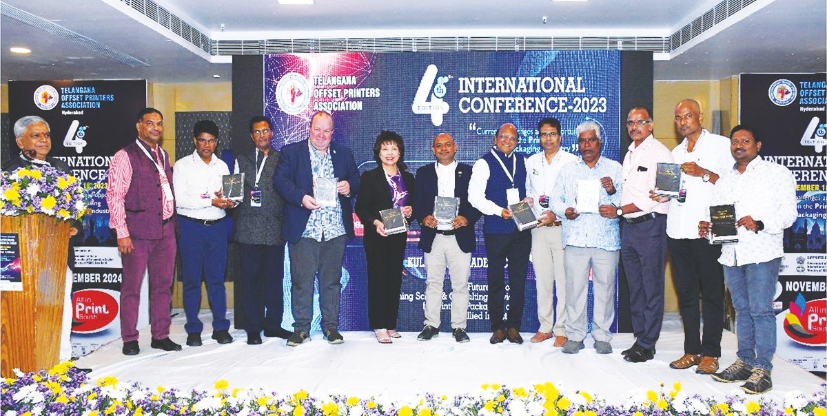 Three speakers, one each from Denmark, Singapore and Sri Lanka ensured that the printers gathered at the one day 4th Edition of International Conference held in Hyderabad, Telangana on November 18, 2023, returned home with groundswell of implementable knowledge and tips while deliberating the theme on “Current Challenges and Opportunities in the Printing and Packaging Industry.” Joining soon after the presentations from international speakers, Kulakkada Pradeep of Future Schoolz from Kerala enthralled the gathering with essential inputs on what printers needed to practice without any additional financial burden to their presses.The conference was organised by the Telangana Offset Printers Association (TOPA) with the Support of Govt. Of India, International Co-operation Section Ministry of MSME, New Delhi with the event duly sponsored by the well known organisation Technova.