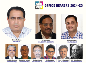 Those printers who have been unanimously elected as Office Bearers of AIFMP for the year 2024-25 are: Satish Malhotra, President; K Rajendran, Hon General Secretary; Rahul Mahajan, Hon Treasurer; Vinod Kr Sharma, Vice President (N); Samadeet Baruah, Vice President (E); Sanjay Ghatwai, Vice President (W); M Balagopal, Vice President (South); Vinay R Kalaskar, Hon Joint Secretary; and RN Dutta Baruah, Imm Past President.