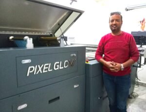 PixelGlow Radiant Pro – a digital UV & foiling system now running efficiently at Jaipur-based Vanshika Creation has changed the way local people avail digital print embellishment solution. “When it comes to embellishing graphic prints and bespoke items, what we know is that people used to head for Delhi for that. Those people, if they happen to be our customers these days, no longer go to Delhi because we have the PixelGlow,” tells Kuldeep Vijay, Proprietor of Vanshika Creation.