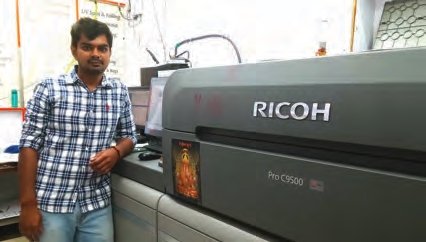 Printing in the industry’s leading resolution of 2400×4800 dpi on lightweight as well as heavyweight media to produce dazzling textured graphics, RICOH Pro C9500 takes in stocks right from 40 gsm up to 470 gsm. “The press’ media handling capability and speed are some of its attributes that actually impressed us,” tells Dipu, adding, “Its upgradable speed of 135ppm meets everything we require on time. Currently, we are producing around 30,000 sheets in 8 hours with this RICOH digital workhorse.”