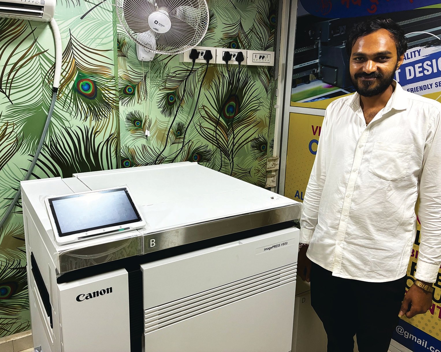 Incepted barely in a year’s time, Navi Mumbai-based Nav Durga Enterprises has triggered its overall digital printing and production capability with the installation of a brand-new Canon imagePRESS V800 digital colour production system. “These days, customers are highly quality conscious. Vividness in colours, crispiness in graphic textures, and accuracy in every single print output are the needs of the hour. Without all these characteristic components in print process and results, there is no way to impress and engage quality customers in business. Our newly installed iPR V800 is the right machine capable to do it so,” tells Devji Manodara of Nav Durga Enterprises.
