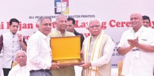 Haryana Chief Minister Manohar Lal Khattar laid the foundation stone for the construction of building of All India Federation of Master Printers (AIFMP) at IMT Manesar, Gurugram after Bhoomi Pujan. This building will be constructed on an area of about 1,400 square metre in Sector-2, Manesar.
