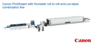Canon will showcase Canon ProStream with Hunkeler roll to roll and cut-stack combination line while Screen will showcase Screen Truepress Jet520HD with Hunkeler roll to roll and cut stack combination line and Screen Truepress PAC520P with Hunkeler roll to roll for paper