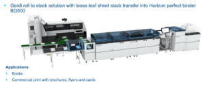 The company will also showcase Gen8 roll to stack solution with loose leaf sheet stack transfer into Horizon perfect binderBQ500 for applications like books, commercial print with brochures, flyers and cards.