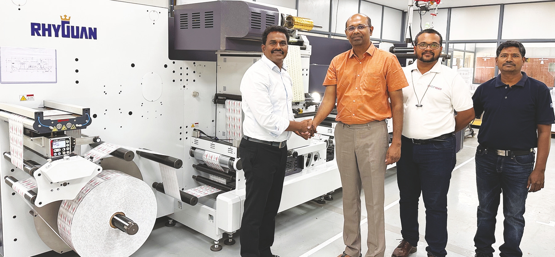 A household name in the south Indian label manufacturing industry, Chennai-based Pioneer Arunachalam Packaging has always been at the forefront of offering labels that stand out amid the crowds and differentiate from the competitors. What it takes to produce the outstanding labels is the company’s robust team of experienced printing and production professionals powered by a line of advanced presses and post-press machines, among which a Rhyguan Plus-420 converting & finishing Machine is the latest addition.