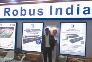 Ahmedabad-based Bopl, which has partnered with Hebei Wanjie Technology Group to form Wanjie India,pulled crowds to its presentation of the all-in-one WJPS- 350/450/560/680 shaftless intermittent/full rotary offset label and flexible packaging material printing machines. “These machines are developed to cover the whole label and flexible packaging industries, printing 12 micron polyester films up to 300 micron materials,” tells Rakesh Patel of Bopl (Wanjie India). A leading producer of carton packaging machines, Robus India demonstrated Excellence Series automatic folder gluer with MES ready feature, which is introduced for the first time in India.Prem Vishwakarma, MD of Robus India, said the machine was booked by Bengaluru-based Global Printing & Packaging on the first day of the exhibition.
